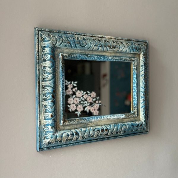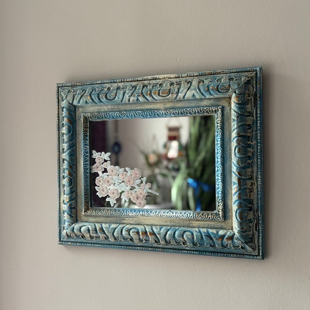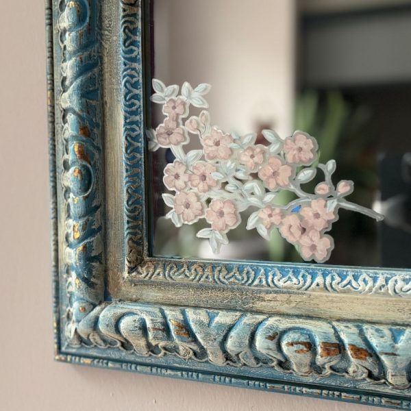 Ayna yüzeyine Iron Orchid Designs transferiyle sanatsal bir dokunuş eklendi.